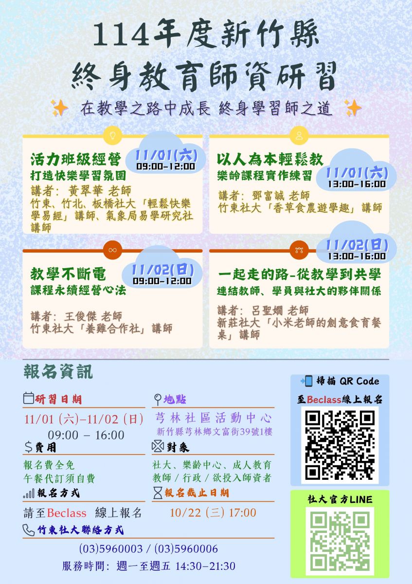 ※ 主辦單位保有課程調整與活動異動之權利;如遇不可抗力將另行公告。